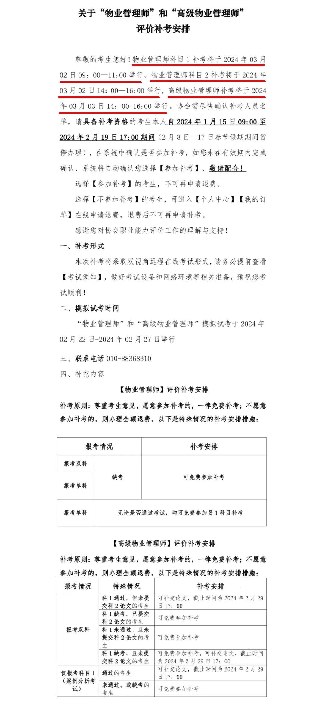 “高级物业管理师”评价补考安排
