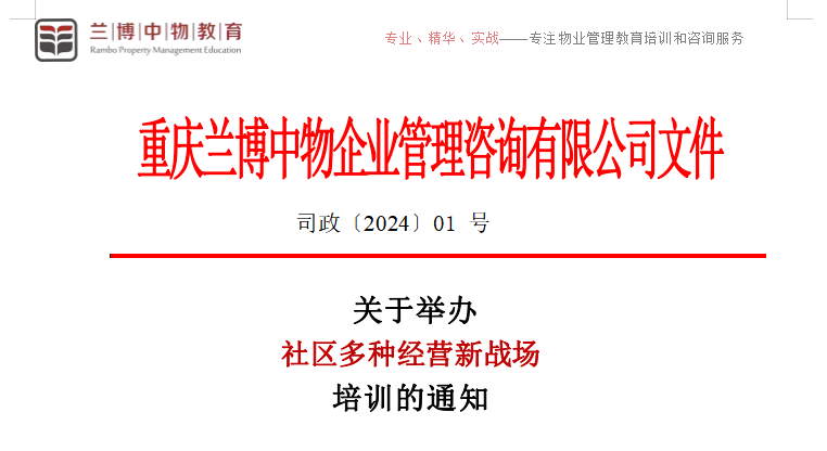 结合兰博中物教育的年度培训计划,兹定于20243月开展《社区多种经营新战场》的培训,现将有关事项通知如下:
