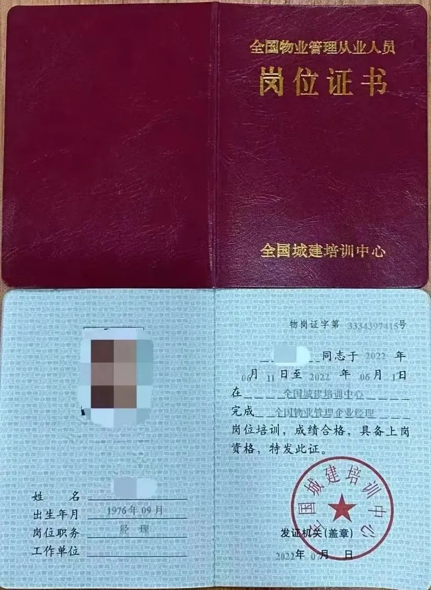 物业经理证书