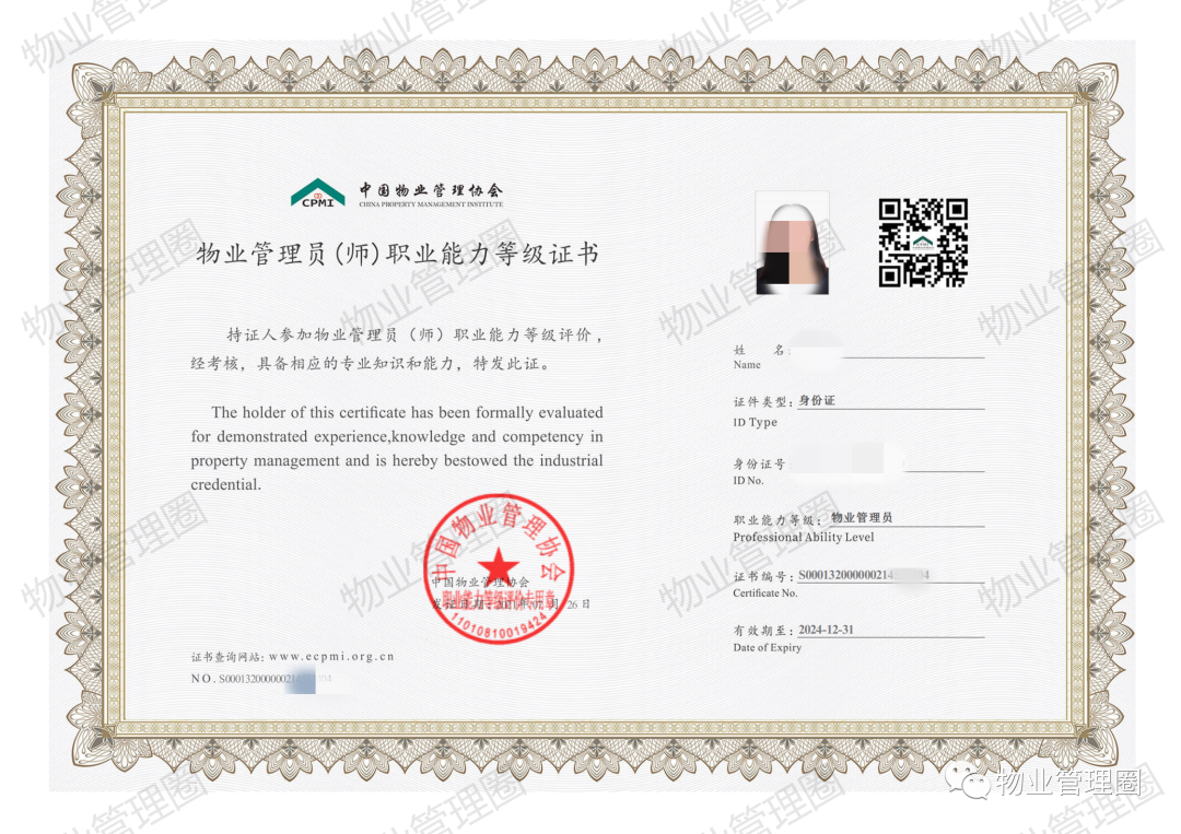 ▲物业管理员证书