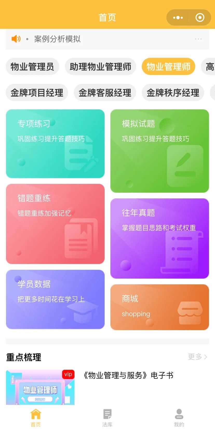 在“物业管理师通关刷题”小程序线上培训。