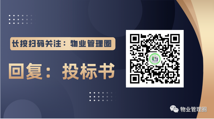 往期精彩推荐▶房子没住人,为啥要交物业费?▶家里明明没有用水,为什么水表还在转动?▶物业保洁工作方案(附检查表)▶2024年小区秩序维护部重点工作计划▶物业公司业主装修验收表(BG-ZX-002~003)▶物业装饰装修管理服务协议▶物业人、物业公司都需要的证书▲长按二维码关注,回复:投标书👉精品!物业管理投标书