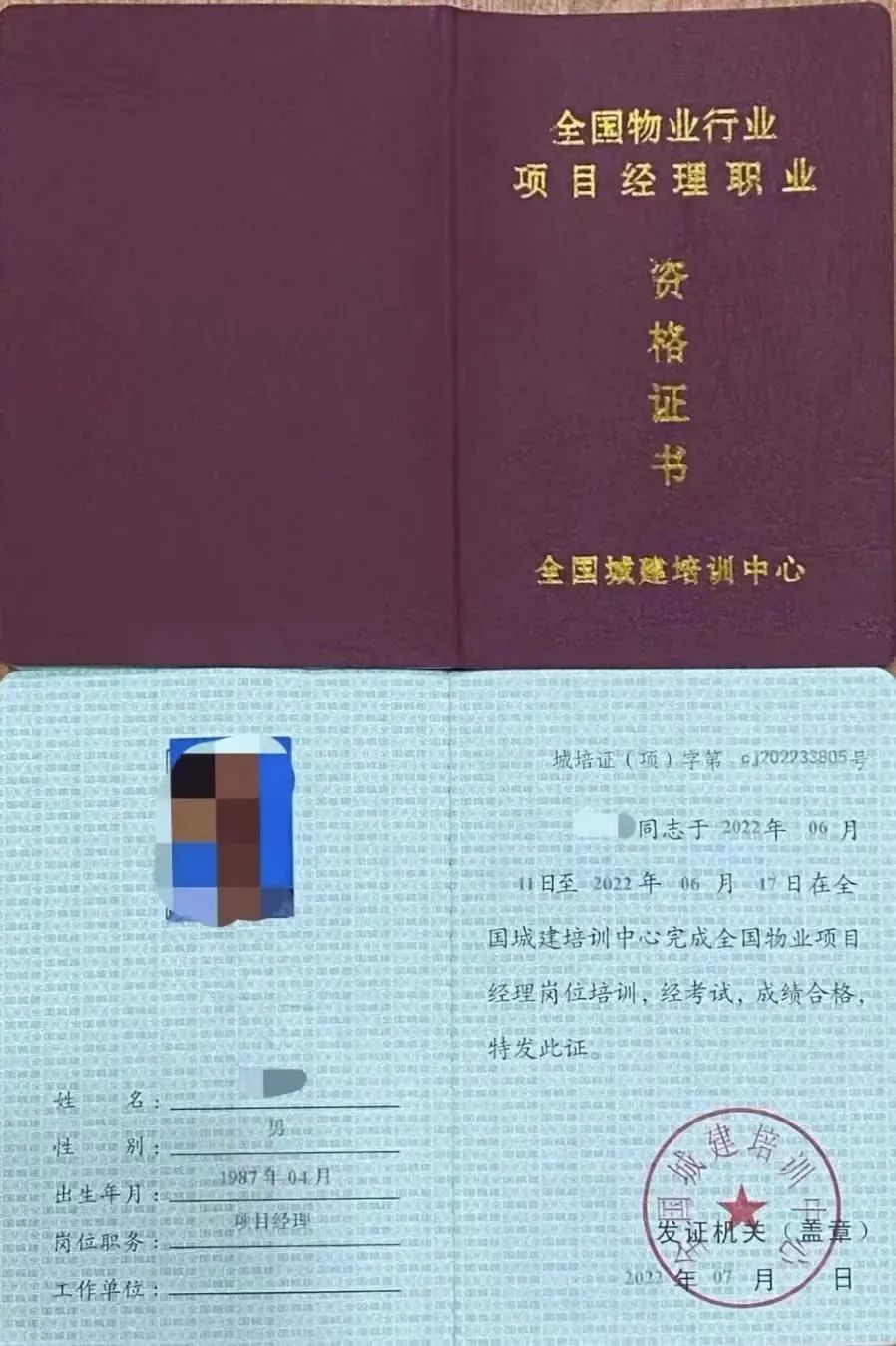 物业项目经理证书