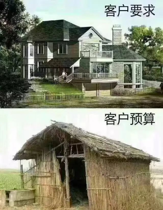 理想很丰满现实很骨感我相信很多人都会遇到客户要求和客户预算相差甚远的情况就像是下面这样一样回到这个问题,我也有了灵感,瞬间感觉这个问题很有趣,其实没人有这样的诉求,大家真正的诉求一般是这样的:1、只是单纯的要求取消物业费,至于那些大多数业主都不知道的设施设备嘛,还得有人继续维护。2、别人装修吵到我了,你得管,我装修嘛,关你什么事,你管得太宽了。3、别人在楼道里放东西,不好意思挡着我了,你得管,我在楼道里放东西,与你何干?那些电瓶车坐电梯的你怎么不管?4、别人电瓶车上楼,不好意思,影响我正常坐电梯了,还给我带来火灾隐患,你必须要管,我电瓶车上楼嘛,呵呵,我是业主,你物业凭什么管我?5、别人的亲戚进门时,被盘问登记后放行,你看到了,你指责物业公司,为什么什么人都可以进?你的亲戚进门时被盘问登记后,你指门岗鼻子大骂,瞎了你的钛合金Gold眼,我家大爷也你敢拦?还想不想收物业费?……对吧,这才是大部分人真正的需求!双标,一切皆因双标!业主希望物业公司管着所有业主,但每个业主都把标准定在别人身上,也就是只准且必须管别人,别来管我。要是真没有物业公司,好吧,垃圾没人清理算小事了。如果配电房没人管,跳闸了也是小事、如果因无人保养,爆炸了、那就等着停电吧。或许有人说,我交了电费,供电局要解决,呵呵,供电局可解决不了你小区的变压器哟。还有,没人交公区电费,电梯要不了几个月就会全体罢工,因为供电局不是福利单位,不交电费还给非居供电?那时会出现小区二次供水、非居供电中断,意味着五楼以上的二次供水停电供水中止,电梯中止,消防系统中止,监控系统中止……有人要说,物业公司这么高尚?没有,一切皆因利益,物业公司是企业,盈利是第一目的。你们小区如果有30%以上的都软硬不吃,以各种理由不交物业费,好吧,不用你们赶,物业公司会自己走人的。最后受害的人是谁呢?是物业公司吗?不存在的,物业公司如果真被逼走了,会挨个起诉欠费业主的,之前没交的,一样会收回来,即使因物业公司缩减服务未达到预期服务质量而被判物业费打折,至少物业公司还有的收,你不服判决那继续对着干,如果不对着干又不执行法院判决,物业公司申请强制执行,保不齐作为业主的你会被拘留或上征信。而小区的那些设施设备都是全体业主的,没人维护或维护不到位提前报废换新,放心吧,出钱的人永远是业主。如果再因为物业管理不到位导致房价比隔壁同类型小区但物业服务水准很高的小区每平米少个1000块,算笔账,100米方米,就少卖10W,哪怕物业费2元,10W能交多长时间的物业费了?500个月,即40多年。亏了还是赚了?最后,与其说物业公司是来管理小区的,还不如说物业公司提供的是长期的保值服务,至于为什么这么多人讨厌物业,还是上面那样说的,业主总希望物业公司能对小区业主进行管理,但我作为业主我只希望物业公司只管别人,不准管我。又正因为物业公司无差别管着每位业主的行为,所以处处对我加以限制,所以我才讨厌你,希望取消你!小区是我家建设靠大家大家齐努力幸福你我他!!!END听说关注这个号的人运气都不错《小区物管》2024年1月最受欢迎的资讯