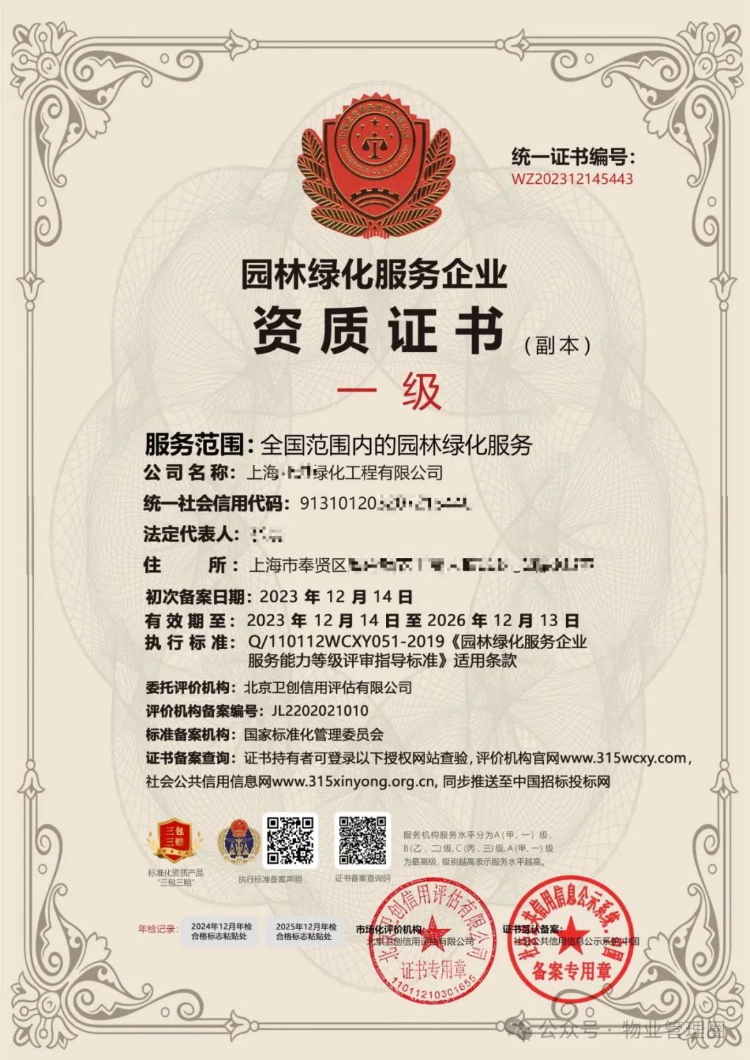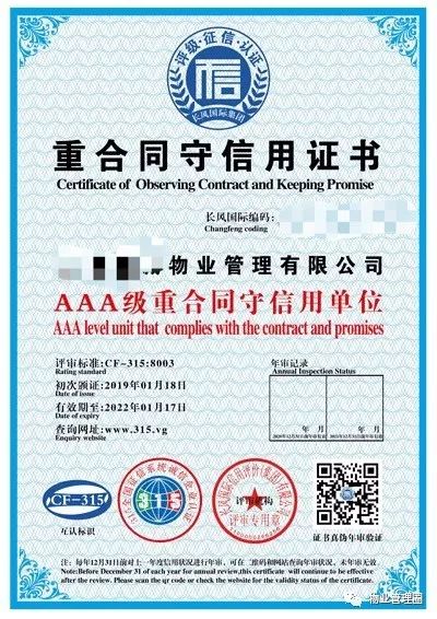 好工作,行业证书加持!好项目,3A资信加持!证书申报 培训考证一旦用得上时,你也有!全国商务诚信信用共享平台:http://www.dongjugov.com中国招标投标网:http://www.cecbid.org.cn可以查十多年物业行业培训经验信誉好价实惠全国物业管理企业经理👇全国物业管理项目经理👇全国物业管理员👇使用说明一、本证书是全国物业管理从业人员参加岗位培训合格证书和上岗资格证书,限于持证者任职期间使用。二、本证书由全国城建培训中心统一印制、颁发。三、本证书在全国范围内有效。四、持证者在岗期间接受继续教育,由培训机构负责做好记录。五、本证应妥善保存,不得买卖,涂改、伪造。 报名具体事宜 请联系晓乐老师 长按下方二维码 添加微信 👇 长按二维码添加晓乐老师微信微信号:wyglq520(江老师)电话:15151877638全国高级物业职业经理人 报名具体事宜 请联系晓乐老师 长按下方二维码 添加微信 👇 长按二维码添加晓乐老师微信微信号:wyglq520(江老师)电话:15151877638全国工商联人才交流服务中心👇唯一由国家双部门批准成立的中央级国家事业单位!证书编有唯一序列号及证书编号,官网查询:http://www.gslhr.org.cn高级物业管理师、中控安全管理师、人力资源管理师、心理咨询师、健康管理师、财务管理师、职业经理人、项目管理师......等133个工种企业服务资质👇服务资质项目如下:▲物业服务资质▲园林绿化资质企业3A信用评级👇企业AAA信用评级,企业信用等级证书,重合同守信用等随着国家大力推动社会信用体系建设,信用等级证书的使用率越来越高。 3A证书全套:全国通用!《AAA级信用企业》资质铜牌《AAA企业信用等级评定》证书《AAA企业资信等级》证书《AAA级重合同守信用企业》证书《AAA级质量服务信誉评定》证书《AAA级诚信经营示范单位》证书《诚信企业家资质》证书《诚信经理人》证书 报名具体事宜 请联系晓乐老师 长按下方二维码 添加微信 👇长按二维码添加晓乐老师微信微信号:wyglq520(江老师)电话:15151877638