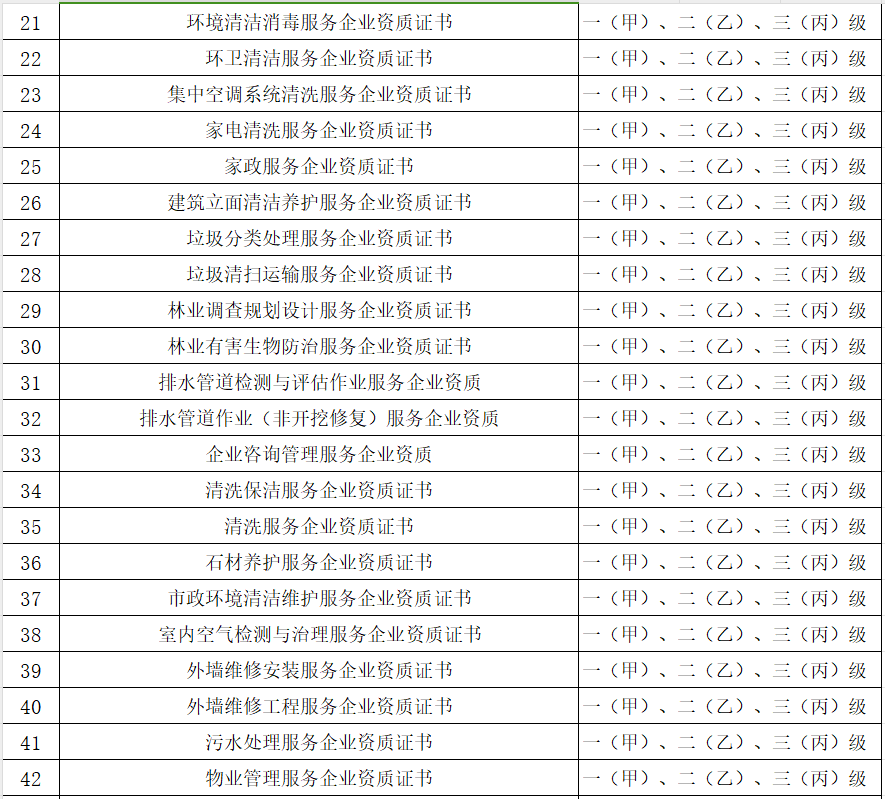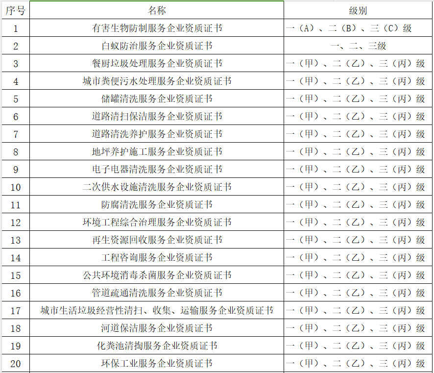 服务资质项目如下: