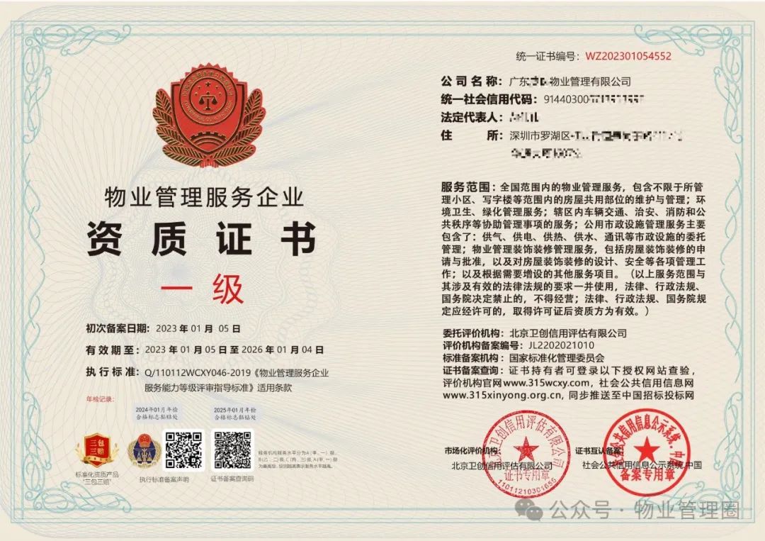 好工作,行业证书加持!好项目,3A资信加持!证书申报 培训考证一旦用得上时,你也有!全国商务诚信信用共享平台:http://www.dongjugov.com中国招标投标网:http://www.cecbid.org.cn可以查十多年物业行业培训经验信誉好价实惠全国物业管理企业经理全国物业管理项目经理全国物业管理员使用说明一、本证书是全国物业管理从业人员参加岗位培训合格证书和上岗资格证书,限于持证者任职期间使用。二、本证书由全国城建培训中心统一印制、颁发。三、本证书在全国范围内有效。四、持证者在岗期间接受继续教育,由培训机构负责做好记录。五、本证应妥善保存,不得买卖,涂改、伪造。 报名具体事宜 请联系晓乐老师 长按下方二维码 添加微信 👇 长按二维码添加晓乐老师微信微信号:wyglq520(江老师)电话:15151877638全国高级物业职业经理人 报名具体事宜 请联系晓乐老师 长按下方二维码 添加微信 👇 长按二维码添加晓乐老师微信微信号:wyglq520(江老师)电话:15151877638全国工商联人才交流服务中心👇唯一由国家双部门批准成立的中央级国家事业单位!证书编有唯一序列号及证书编号,官网查询:http://www.gslhr.org.cn高级物业管理师、中控安全管理师、人力资源管理师、心理咨询师、健康管理师、财务管理师、职业经理人、项目管理师......等133个工种企业服务资质服务资质项目如下:▲物业服务资质▲园林绿化资质企业3A信用评级企业AAA信用评级,企业信用等级证书,重合同守信用等随着国家大力推动社会信用体系建设,信用等级证书的使用率越来越高。 3A证书全套:全国通用!《AAA级信用企业》资质铜牌《AAA企业信用等级评定》证书《AAA企业资信等级》证书《AAA级重合同守信用企业》证书《AAA级质量服务信誉评定》证书《AAA级诚信经营示范单位》证书《诚信企业家资质》证书《诚信经理人》证书 报名具体事宜 请联系晓乐老师 长按下方二维码 添加微信 👇长按二维码添加晓乐老师微信微信号:wyglq520(江老师)电话:15151877638
