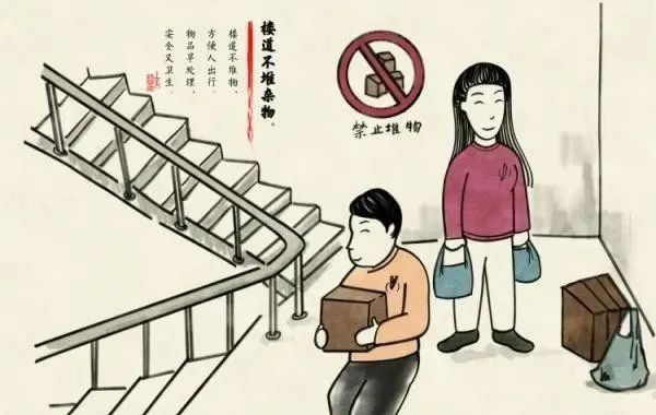 “我家门口,我说了算,物业管不着!” “放在家门口我安心, 你凭什么清理我的东西?” …… 对于家门口的楼道, 你是不是也曾这样想? 楼道虽小,文明事大。 不少小区楼道内存在着 堆放杂物堵塞楼道、 墙面玻璃污秽破损、 小广告乱张贴乱涂画、 照明灯损坏等问题, 不仅影响了居民日常生活秩序, 也带来了安全隐患。 对此, 我们一起来看 文明楼道“八问八答”, 让“小楼道传递大文明”。 一问 楼道内放些鞋柜、纸板不影响他人利益? 楼道里堆满了杂物,占据、遮挡了地面以及墙壁的很大一部分空间,物业无法对该区域的环境卫生进行清洁,久而久之,就会形成卫生“死角”。 关于审理建筑物区分所有权纠纷案件适用法律若干问题的解释: 根据《最高人民法院关于审理建筑物区分所有权纠纷案件适用法律若干问题的解释》第三条规定,楼梯通道,所有权属于全体业主共有。个别业主私自将楼梯通道用于自己堆放杂物,明显是化共有为私有,也是对其他业主共有权的侵害。 二问 楼道内放些杂物没什么影响? 楼道是公共空间,占用楼道空间堆放杂物会带来安全隐患。木制品、棉织品、纸制品等可燃物,存放时间久,稍遇明火极易引起火灾。 根据《消防法》第二十八条规定,任何单位、个人不得占用、堵塞、封闭疏散通道、安全出口、消防车通道,楼道作为火灾时的重要消防通道和安全出口,必须时刻保持安全和畅通。 三问 楼道内放杂物,只要人走得过就行? 小区楼道属于公共消防通道,是广大居民日常出行的唯一通道。将杂物堆放在小区楼道内,影响了居民的进出通行和整体环境,同时也存在安全隐患。当发生地震、火灾等自然灾害的时候,将严重影响他人逃生。 根据《消防法》第六十条规定,个人占用、堵塞、封闭疏散通道、安全出口或者有其他妨碍安全疏散行为的,处警告或者五百元以下罚款。 四问 高层建筑的楼道平常没人来,堆点杂物没关系? 小区的楼道不仅是居民行走的通道,也是发生火灾时用来逃生的唯一通道。 根据《高层民用建筑消防安全管理规定》第二十八条规定,高层民用建筑的疏散通道、安全出口应当保持畅通,禁止堆放物品、锁闭出口、设置障碍物。 五问 小区楼道内的堆放,是业主个人行为,物业管不了? 根据《民法典》第九百四十二条规定,物业服务人应当按照约定和物业的使用性质,妥善维修、养护、清洁、绿化和经营管理物业服务区域内的业主共有部分,维护物业服务区域内的基本秩序,采取合理措施保护业主的人身、财产安全。 对物业服务区域内违反有关治安、环保、消防等法律法规的行为,物业服务人应当及时采取合理措施制止、向有关行政主管部门报告并协助处理。 六问 业主占用楼道堆放杂物并拒绝清理,邻居该怎么维权? 业主占用楼道堆放杂物并拒绝清理,邻居可向小区物业反馈投诉,物业处理无效果的,可向业委会或在业主大会上投诉反馈,依然没有解决纠纷的,可以收集相关资料证据至法院提起侵权之诉。 根据《民法典》第二百八十六条规定,业主大会或者业主委员会,对任意弃置垃圾、排放污染物或者噪声、违反规定饲养动物、违章搭建、侵占通道、拒付物业费等损害他人合法权益的行为,有权依照法律、法规以及管理规约,请求行为人停止侵害、排除妨碍、消除危险、恢复原状、赔偿损失。 业主或者其他行为人拒不履行相关义务的,有关当事人可以向有关行政主管部门报告或者投诉,有关行政主管部门应当依法处理。 七问 楼道里可以搭窝养宠物吗? 不可以。楼道属于小区公共部分,属于业主共有,业主不得随意占用。 根据《中华人民共和国治安管理处罚法》第七十五条规定,饲养动物,干扰他人正常生活的,处警告;警告后不改正的,或者放任动物恐吓他人的,处200元以上500元以下罚款。驱使动物伤害他人的,依照本法第四十三条第一款的规定处罚。 八问 电动车为什么不能“乘梯上楼”、占用楼道充电? 电动车着火短短90秒,但楼道温度可达到200℃,且伴随着大量有毒浓烟,极易引发伤亡事故。 《高层民用建筑消防安全管理规定》中明确,禁止在高层民用建筑公共门厅、疏散走道、楼梯间、安全出口停放电动自行车或者为电动自行车充电,对违反该规定的经营性单位和个人最高可处罚10000元。